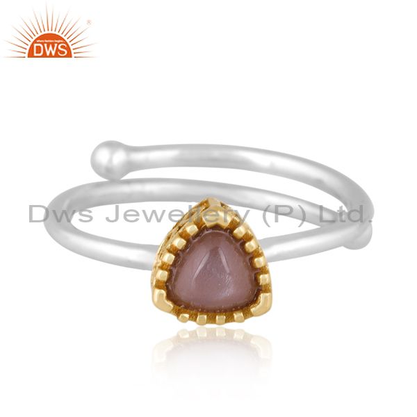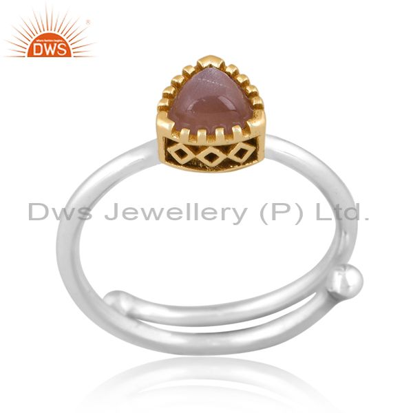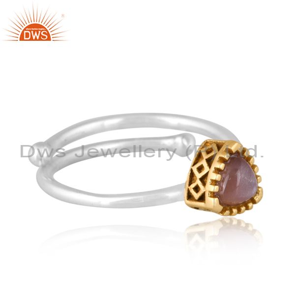Triangular Chocolate Moonstone Set Gold On Fine Silver Ring