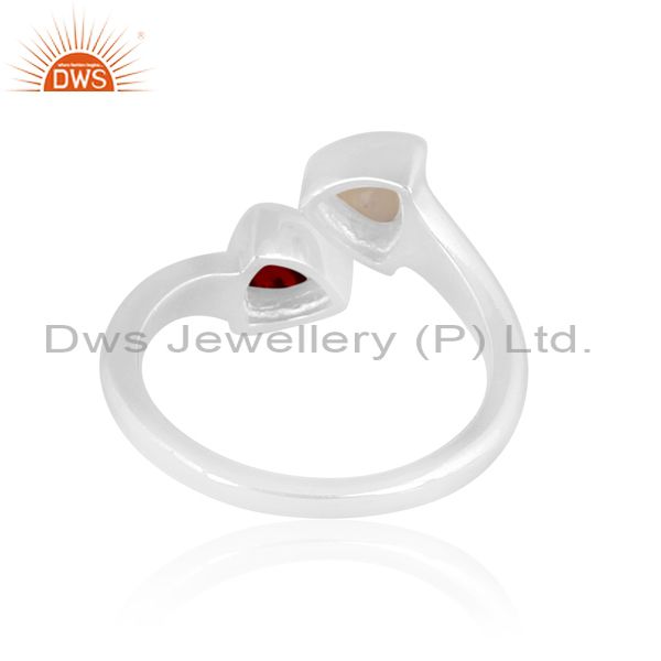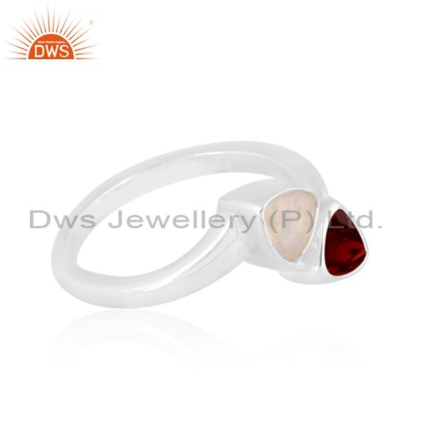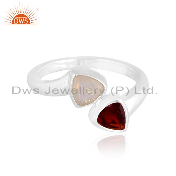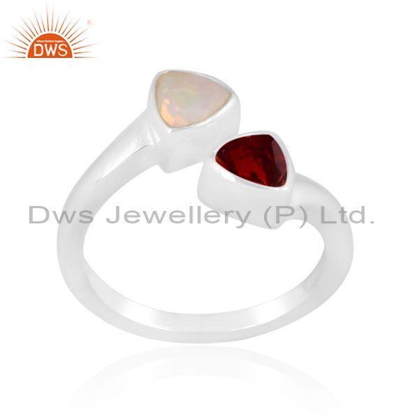 Triangular Ethiopian Opal And Garnet Set Fine Silver Ring
