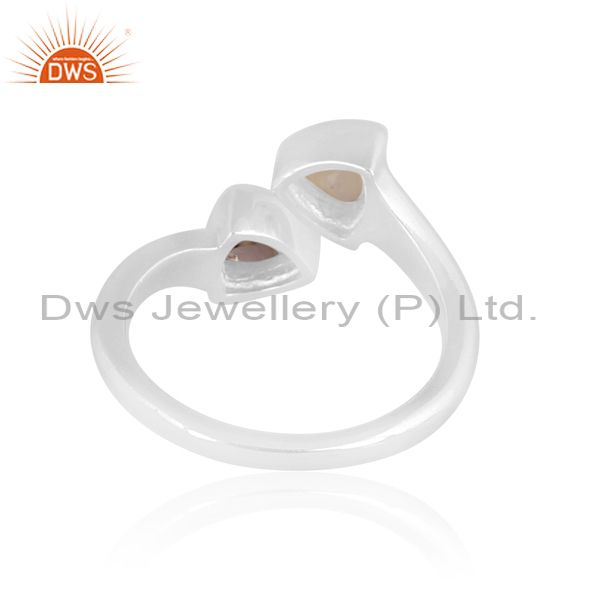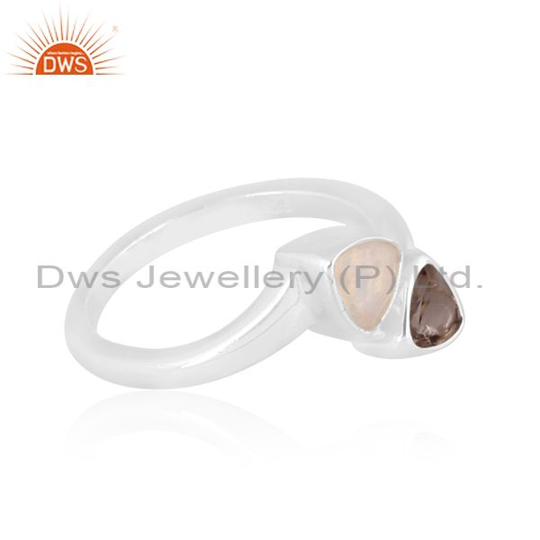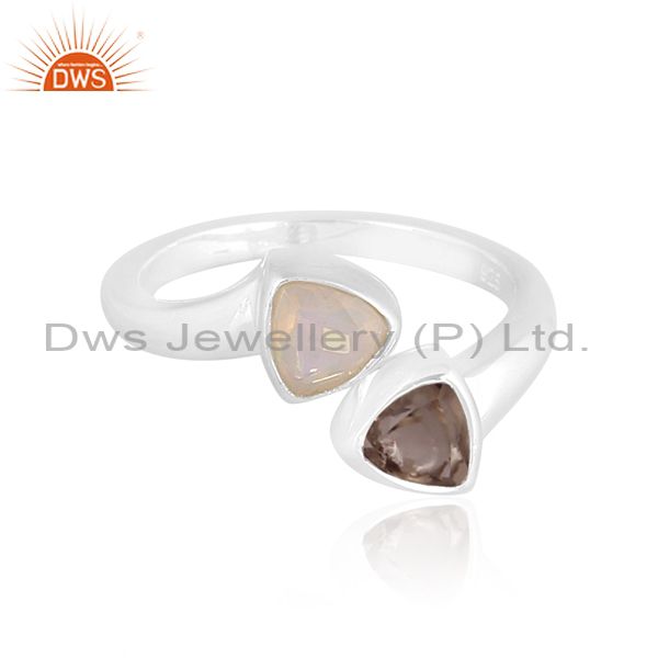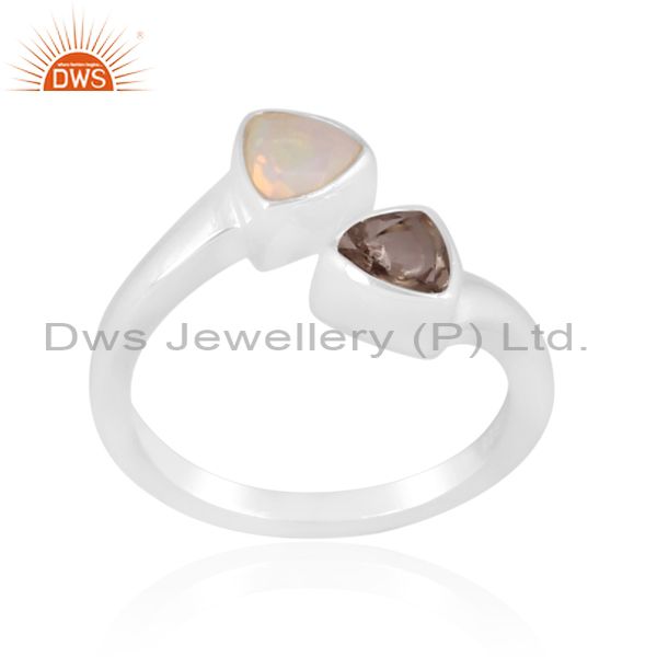 Triangular Ethiopian Opal And Smoky Set Fine 925 Silver Ring