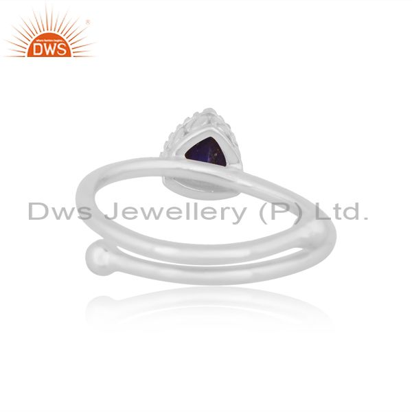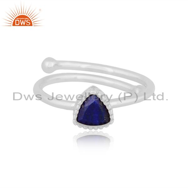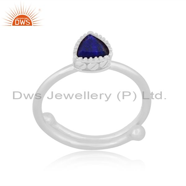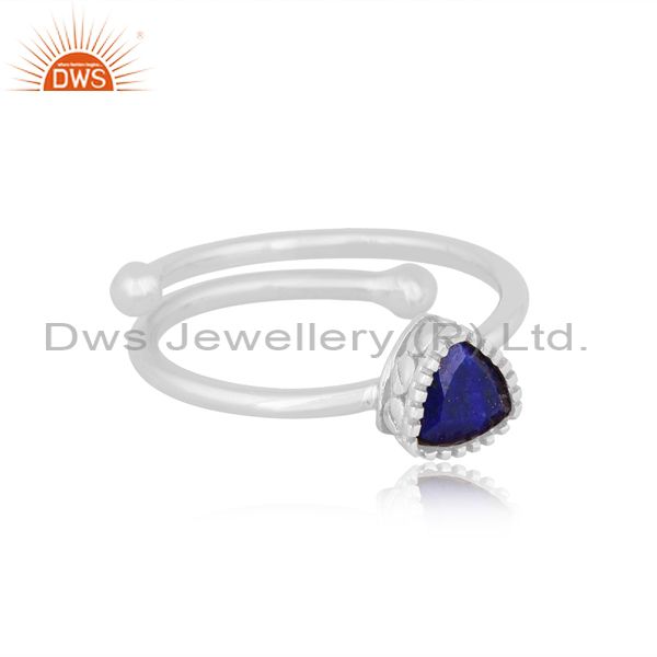 Triangular Lapis Set Fine 925 Silver Designer Crown Ring