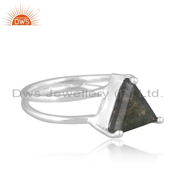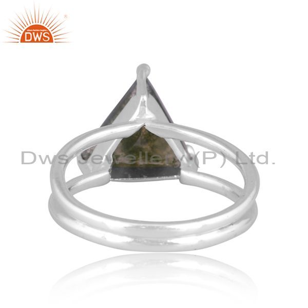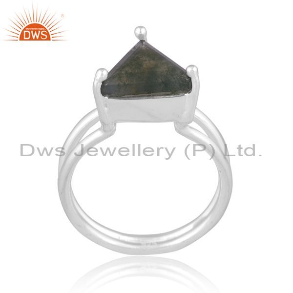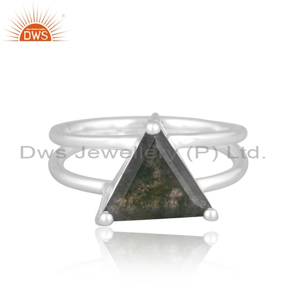 Triangular Moss Agate Set Fine Sterling Silver Designer Ring