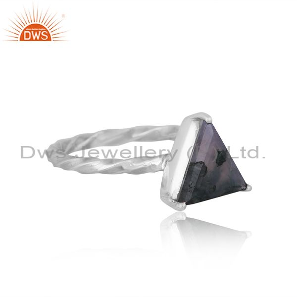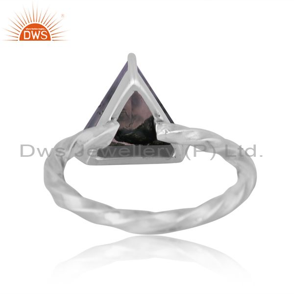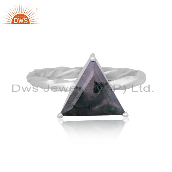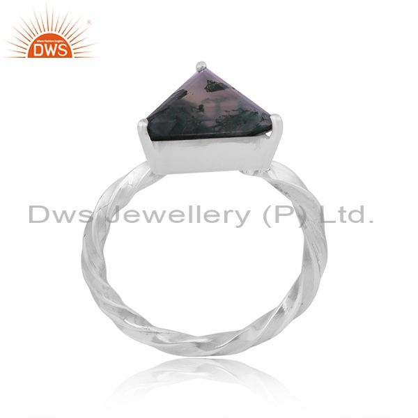 Triangular Moss Agate Set Oxidized Silver Handmade Twist Ring