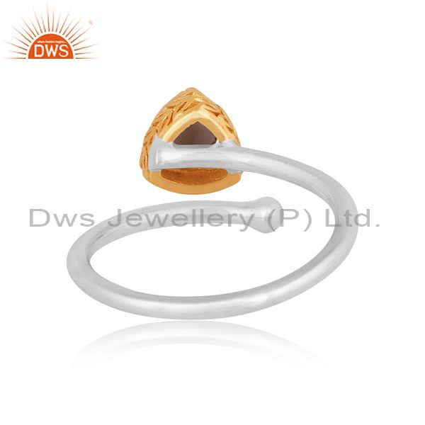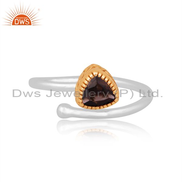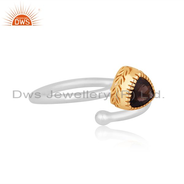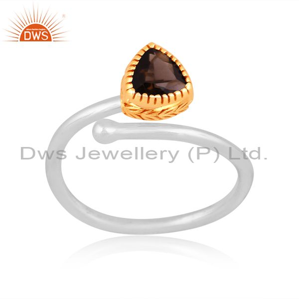 Triangular Smoky Set Gold On Fine Silver Crown Twist Ring