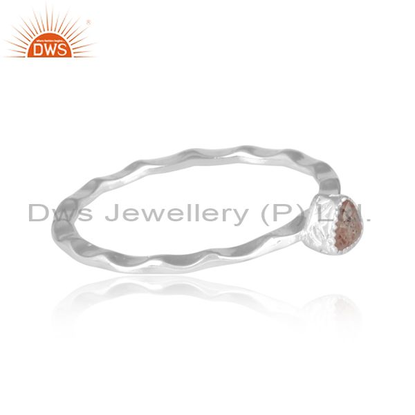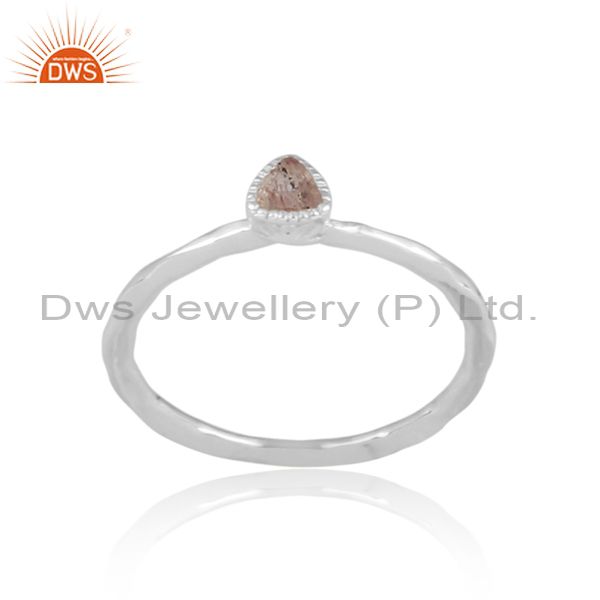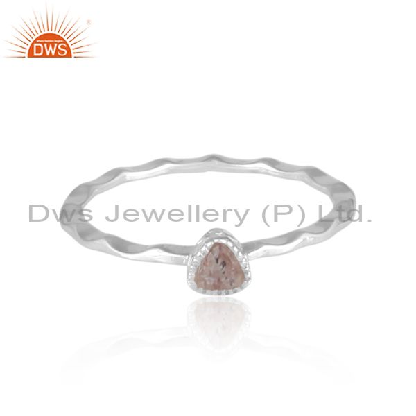 Triangular Strawberry Quartz Fine Silver Handhammered Ring