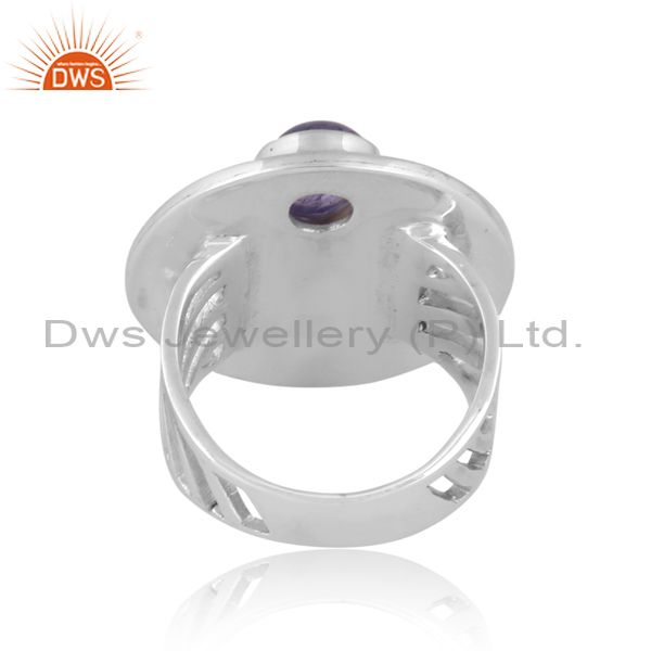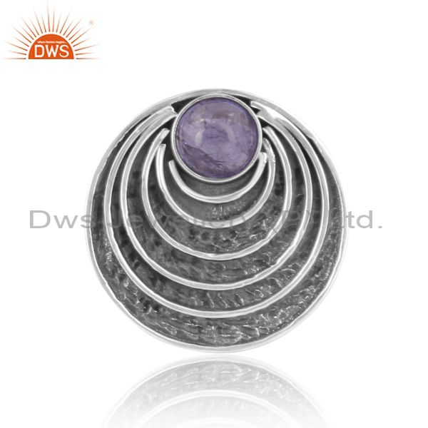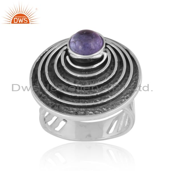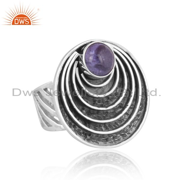 Triangular Tanzanite Set Oxidized 925 Silver Textured Ring