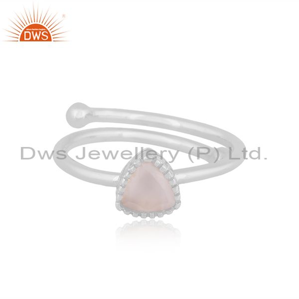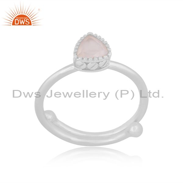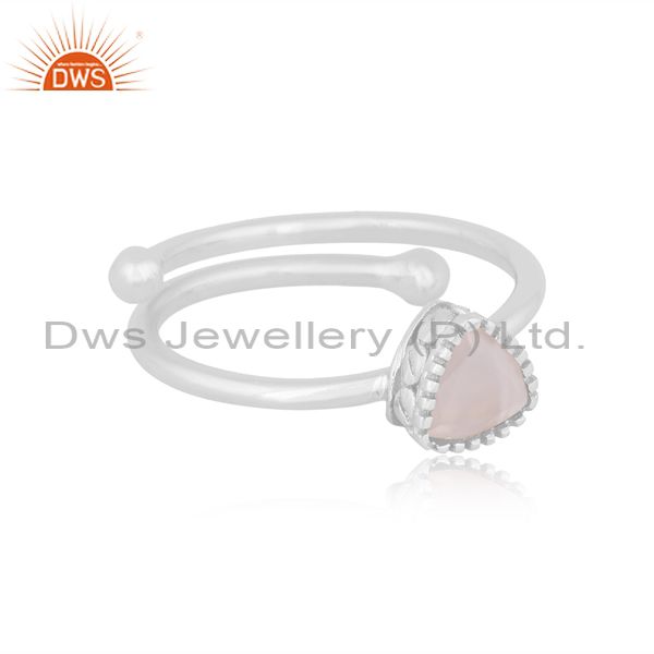 Triangular White Moon Stone Fine Silver Designer Crown Ring