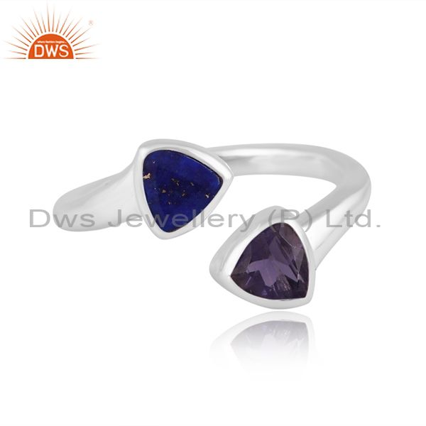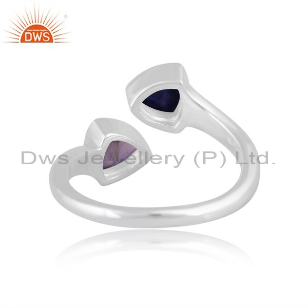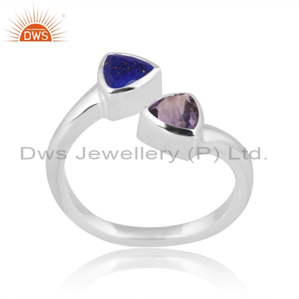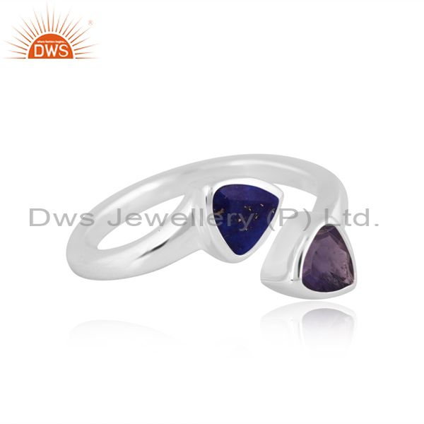 Trillion Cut Iolite And Lapis Set Fine Sterling Silver Ring