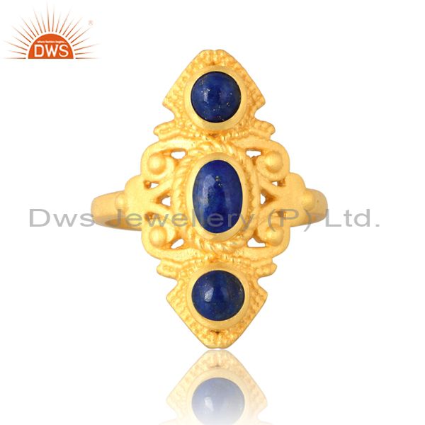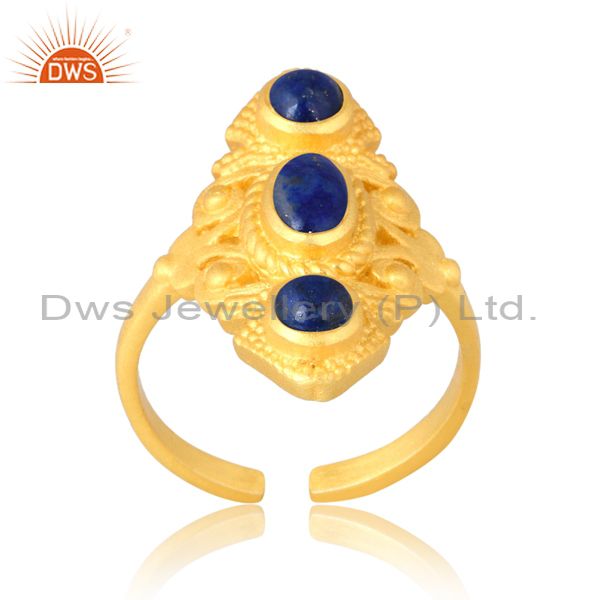 Triple Lapis Stone Unisex Ring In Silver Gold For Women