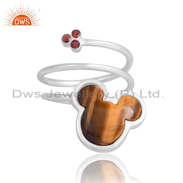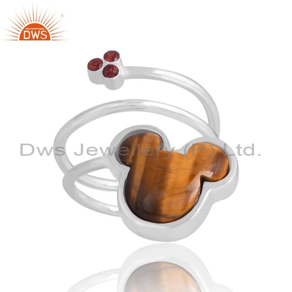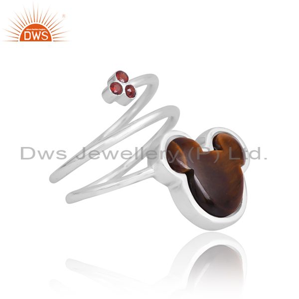 Triple Layer Mickey Band For Finger With Tiger Eye Stone