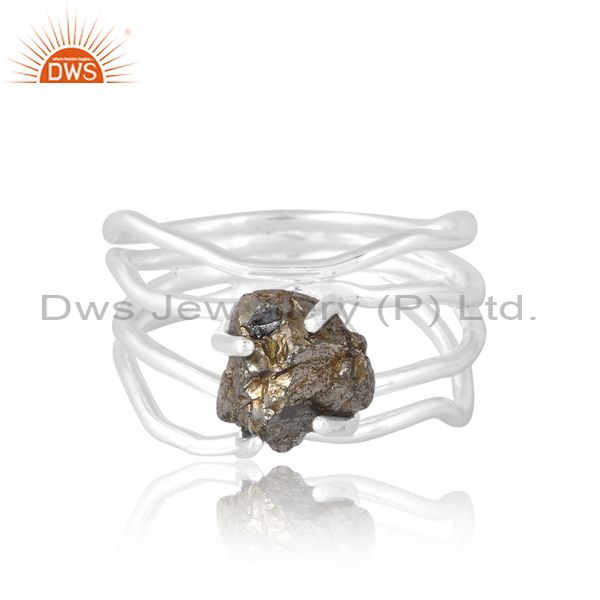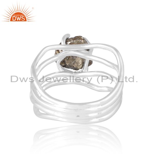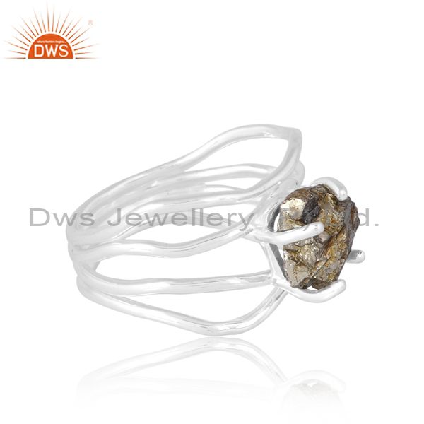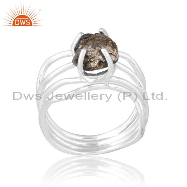 Triple Layer Women S Ring Silver With Prong Set Pyrite Stone