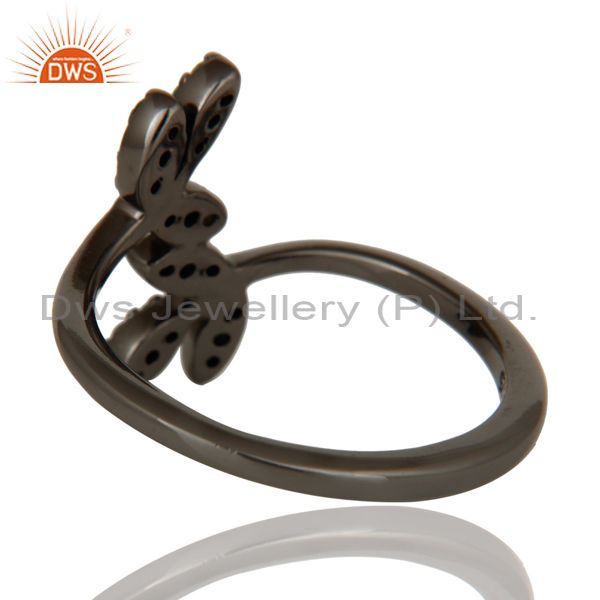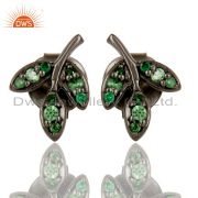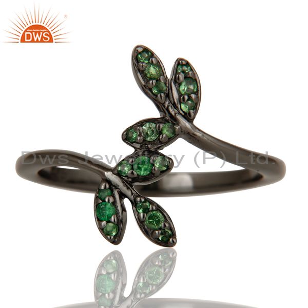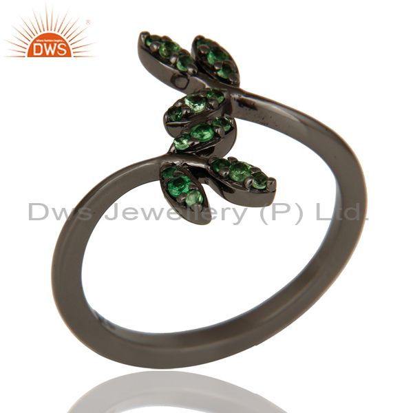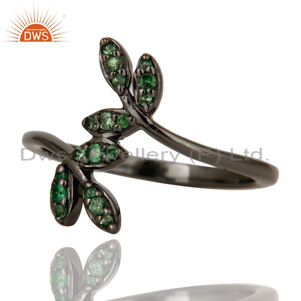 Tsavourite and Black Oxidized Leaf Designer Sterling Silver Ring