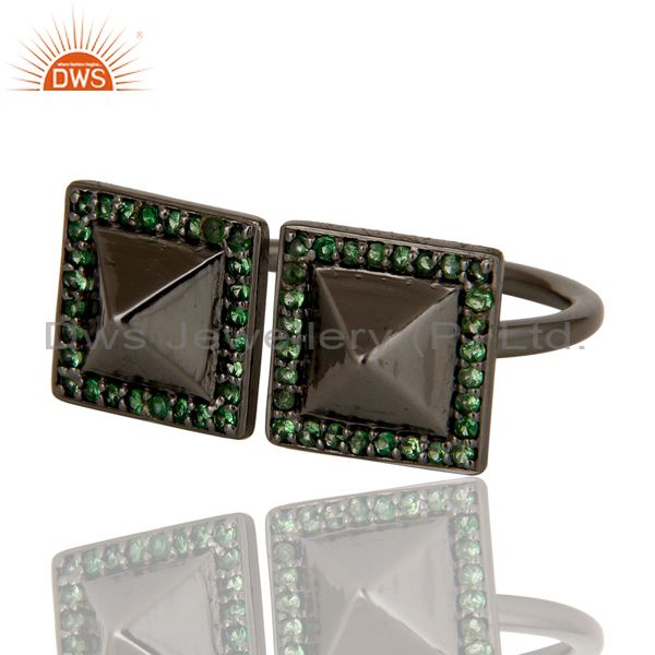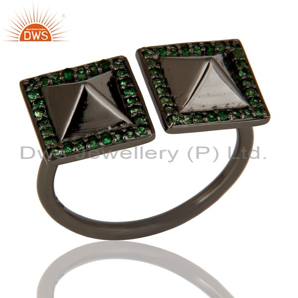 Tsavourite Black Oxidized Sterling Silver Pyramid Shape Ring Statement Ring