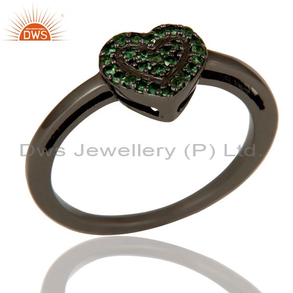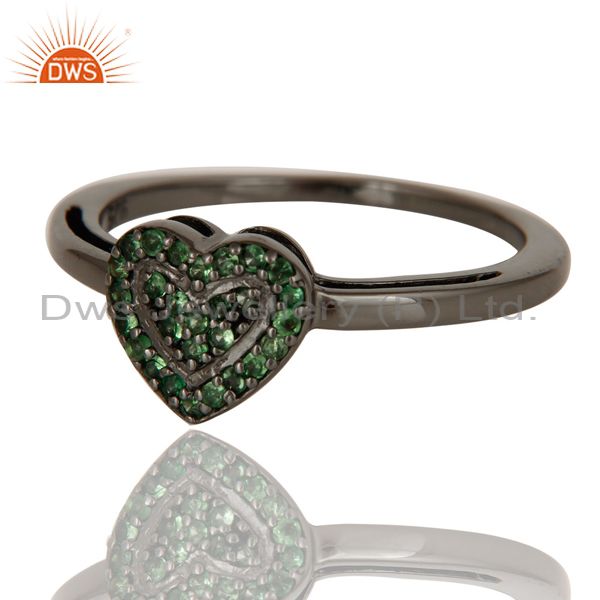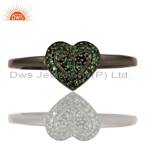 Tsavourite Heart Shape Love Ring Black Oxidized Sterling Silver Ring