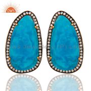 Turquoise & Zircon 22K Yellow Gold Plated Sterling Silver Gemstone Fashion Ring