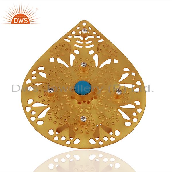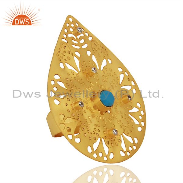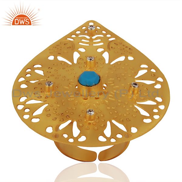 Turquoisel CZ Cocktail 14K Yellow Gold Plated Brass Ring Jewelry