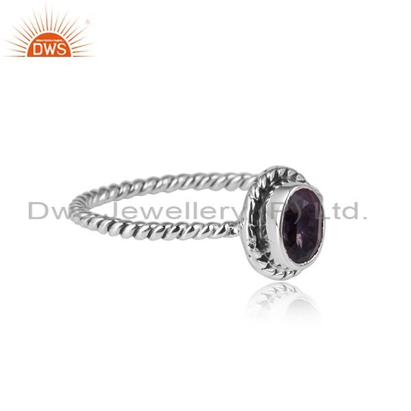 Twisted Design Oxidized Sterling Silver Amethyst Gemstone Rings