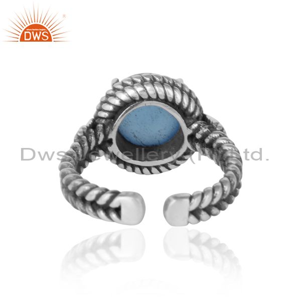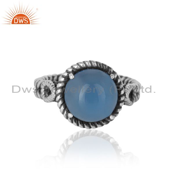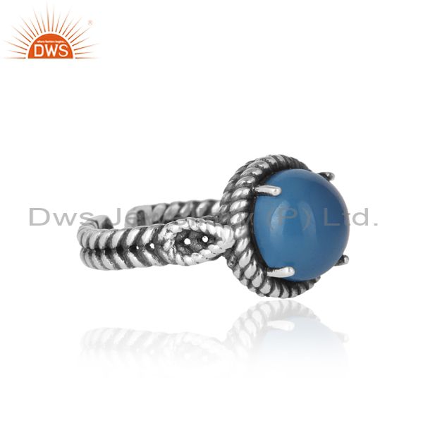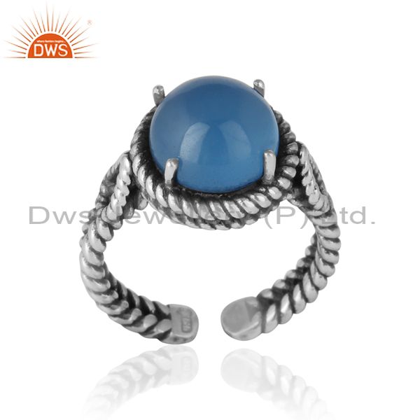Twisted Designer Bold Blue Chacedony Ring in Oxidized Silver 925