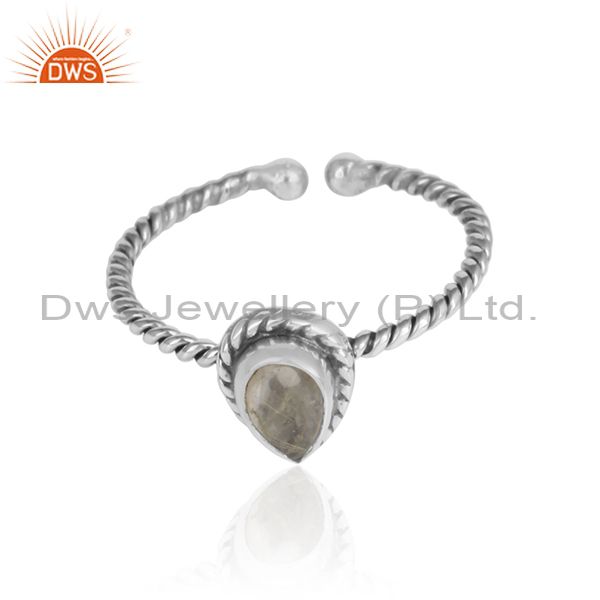 Twisted Handmade Golden Rutile Gemstone 925 Sterling Silver Rings
