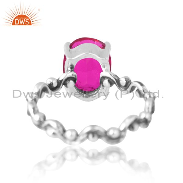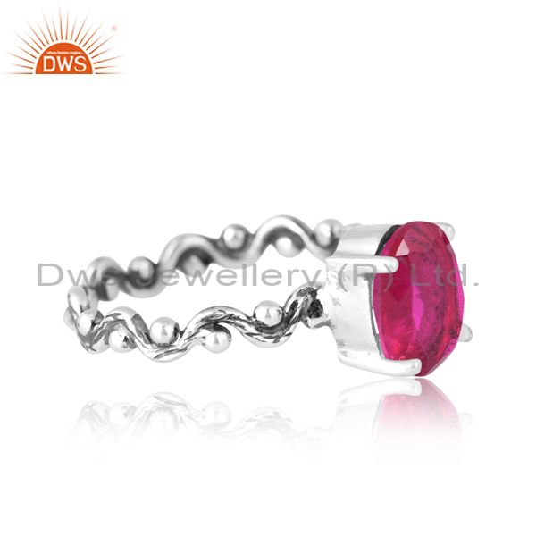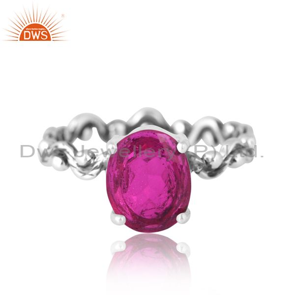 Twisted Metal And Dotted Ring With Doublet Rubylite Quartz
