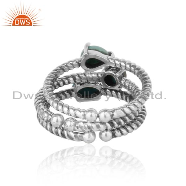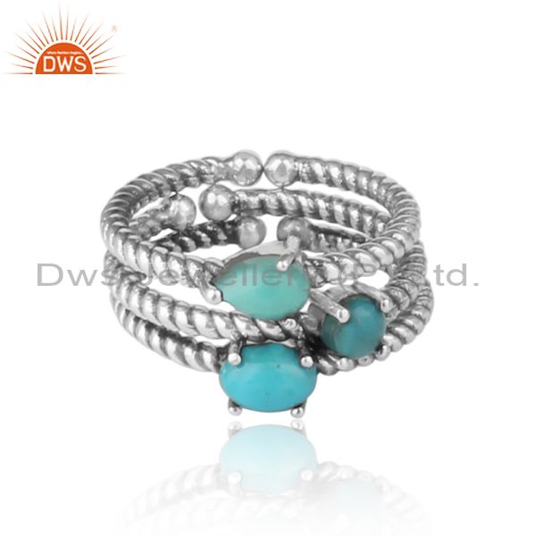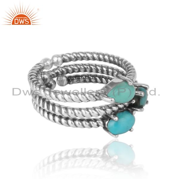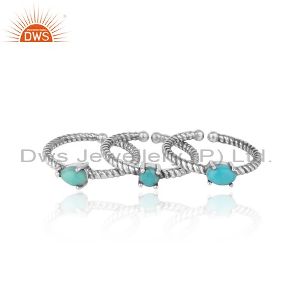 Twisted Ring set of 3 in Oxidized Silver and Arizona Turquoise