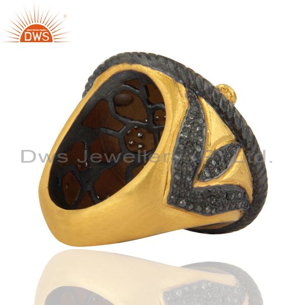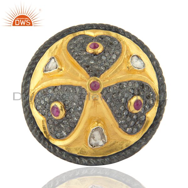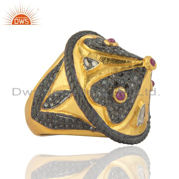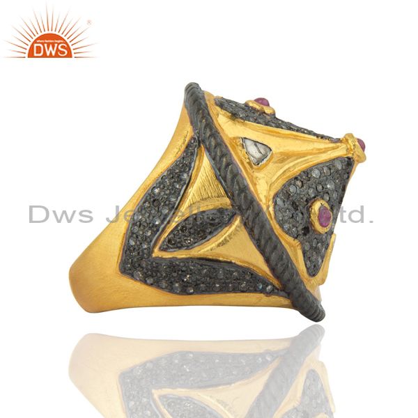 Uncut Diamond Polki 925 Sterling Silver 18K Gold Plated Designer Ring Frindship