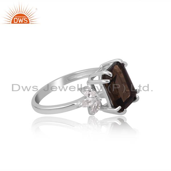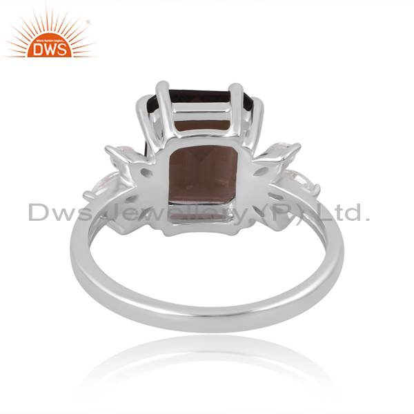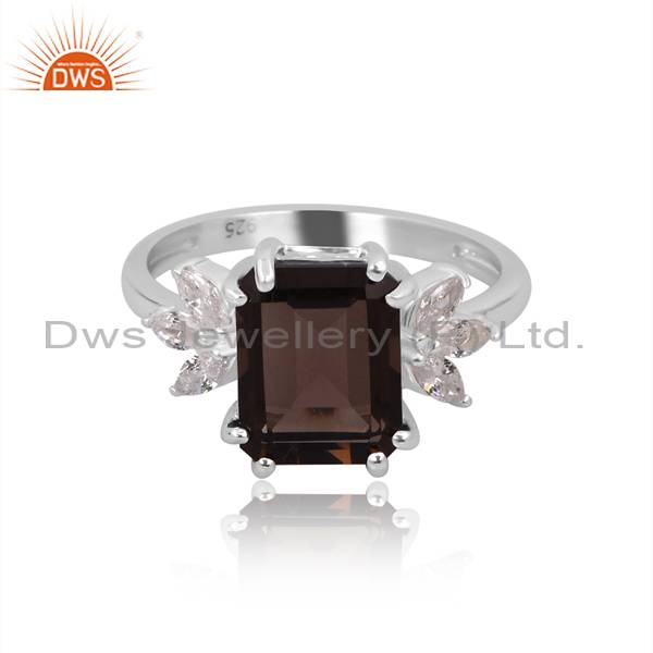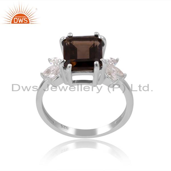 Unique Handcrafted Smoky & Cz Ring - Exquisite Design