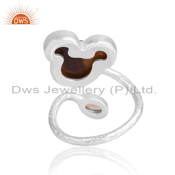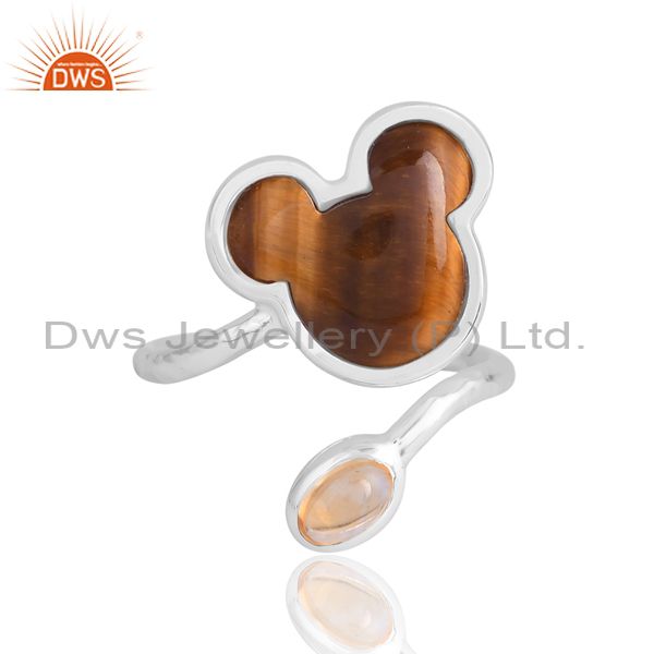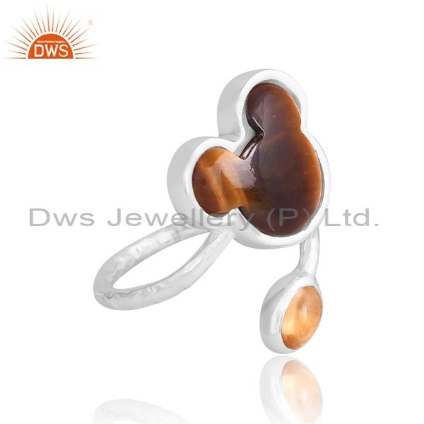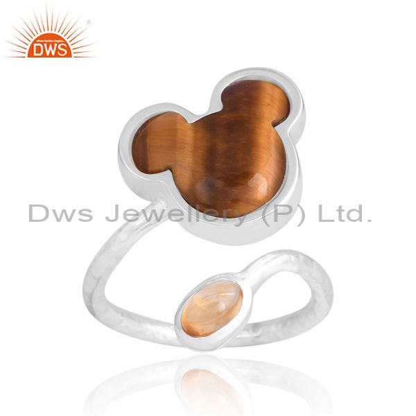 Unique Mickey Twisted Ring With Tiger Eye And Citrine Stone
