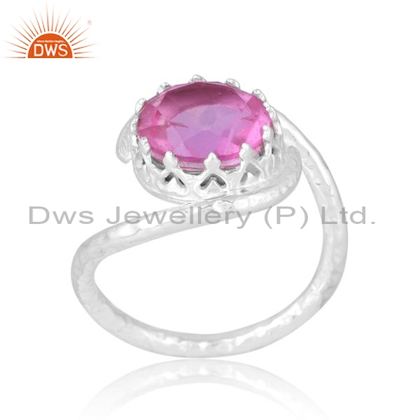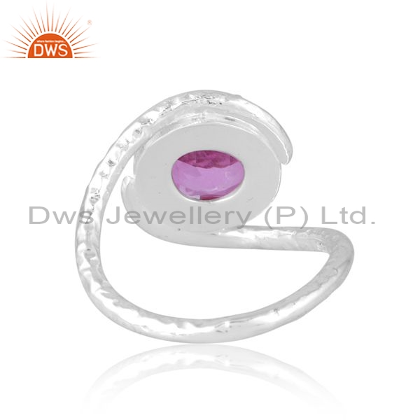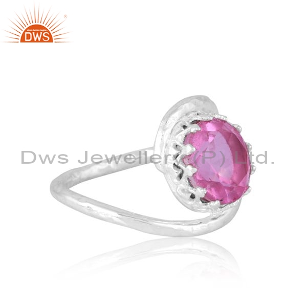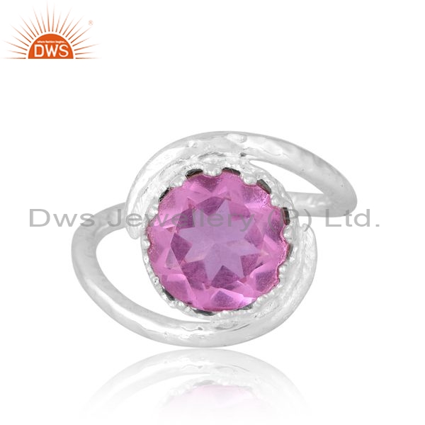 Unique Silver Ring With Double Kunzite Round Cut Stone
