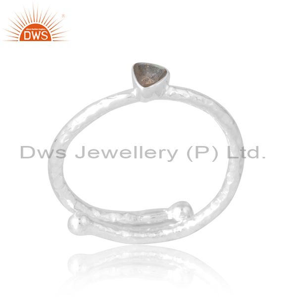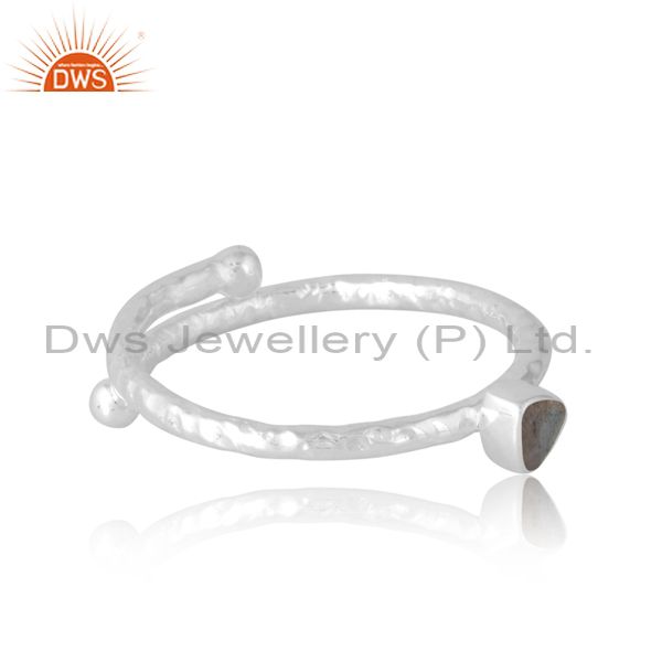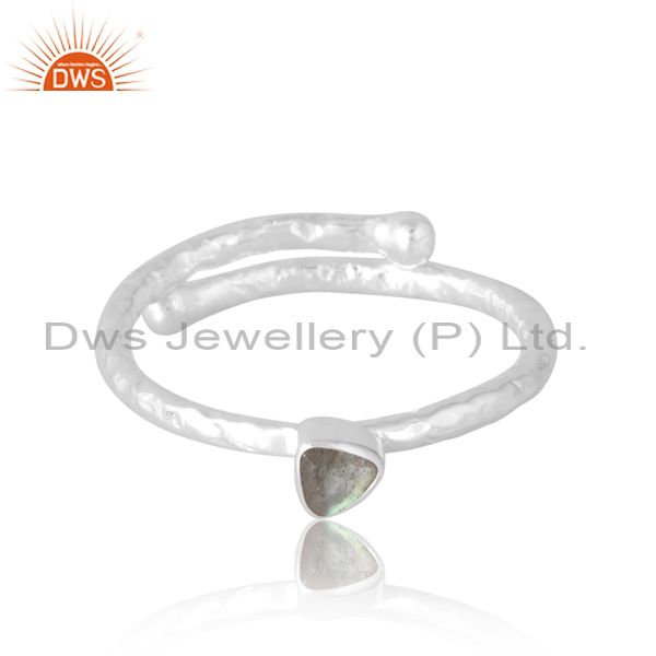 Unisex Adjustable Labradorite Trillion Cut Ring For Proposal