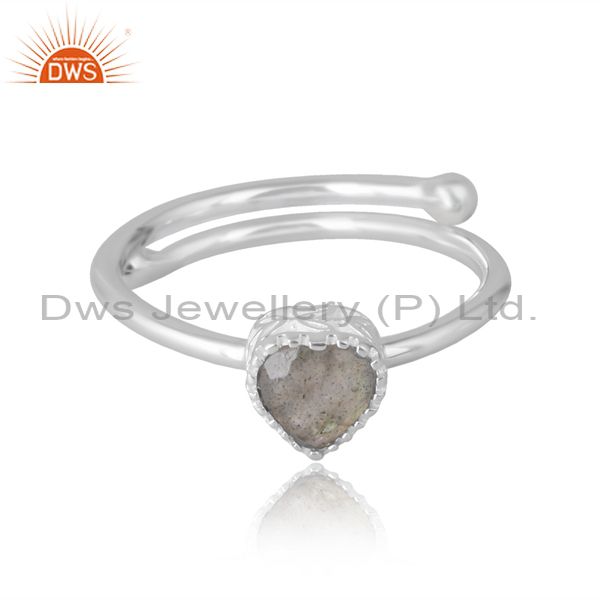 Unisex Silver Ring Heart Labradorite In Bani Border Elegant