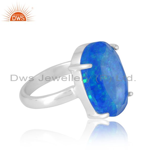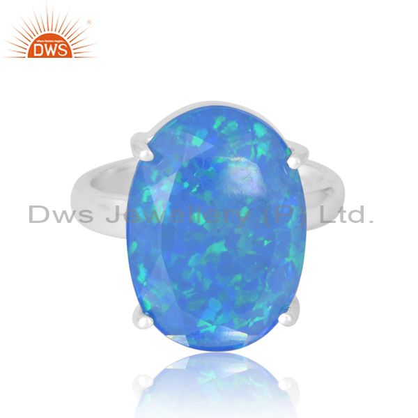 Unisex Valentine Synthetic Green Fire Opal Ring With Oval Cut