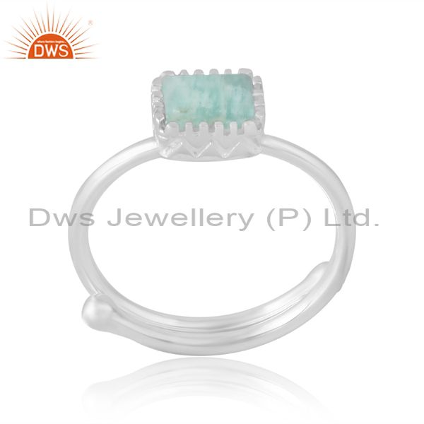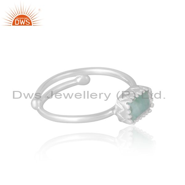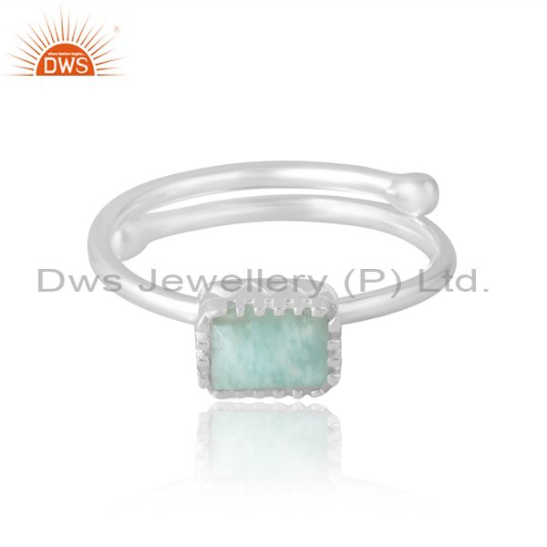 Unisex Wire Border Band In Amazonite Beguette In Silver