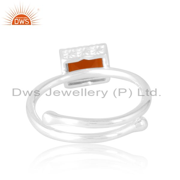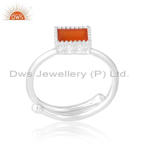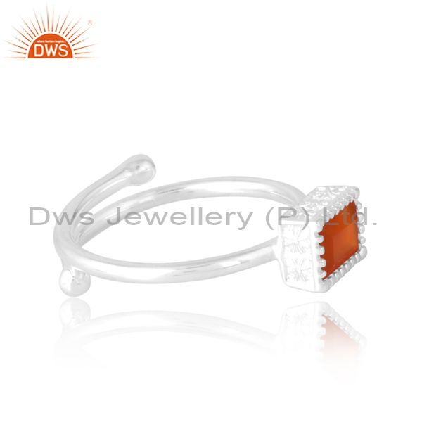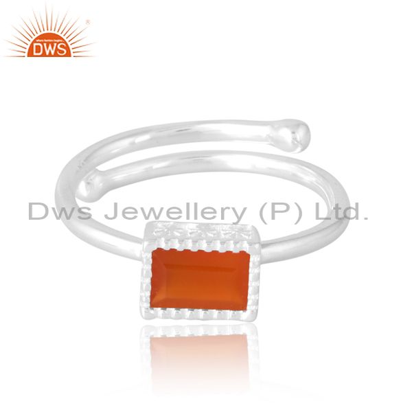Unisex Wire Border Band In Carnelian Beguette Cut In Silver