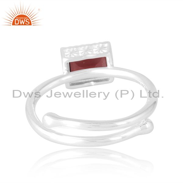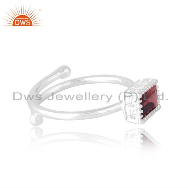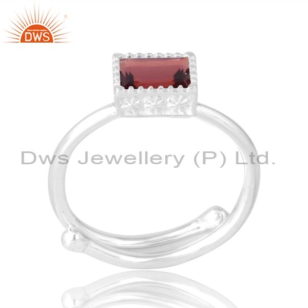 Unisex Wire Border Band In Garnet Beguette Cut In Silver