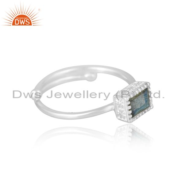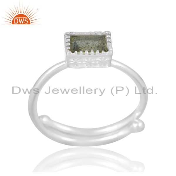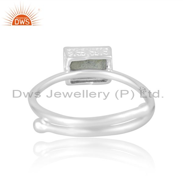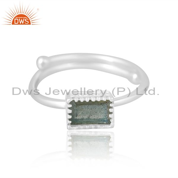 Unisex Wire Border Band In Labradorite Beguette In Silver