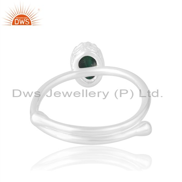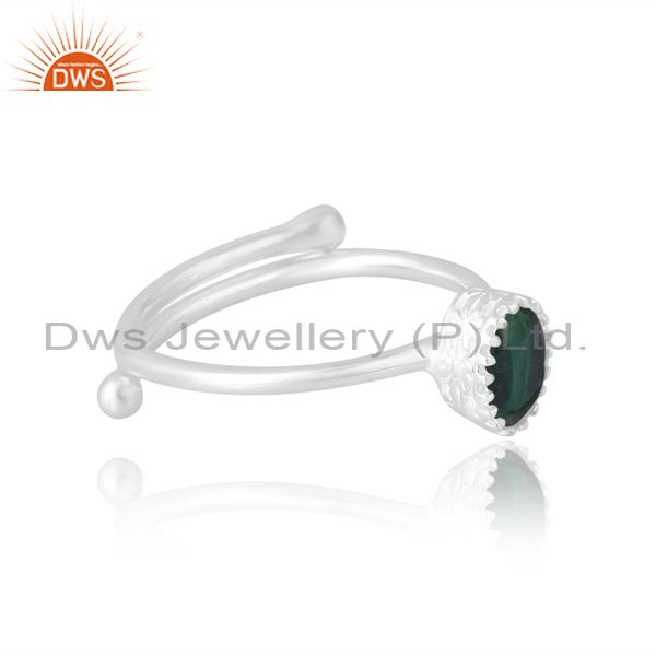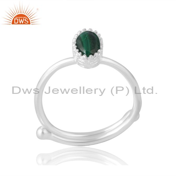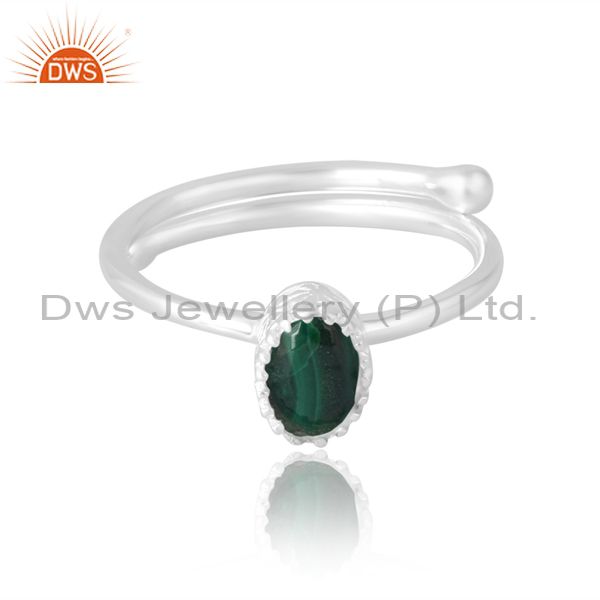 Unisex Wire Border Band In Malachite Oval In Silver Metal