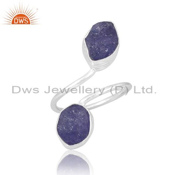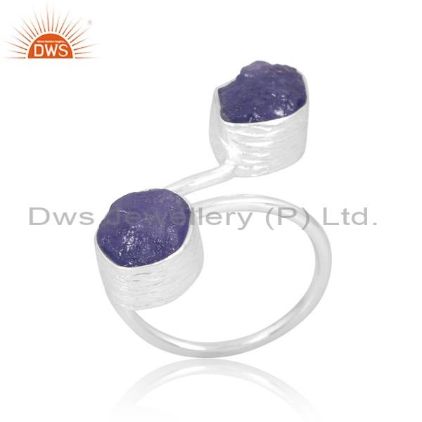 Unshaped Tanzanite Sterling Silver White Gold Ring
