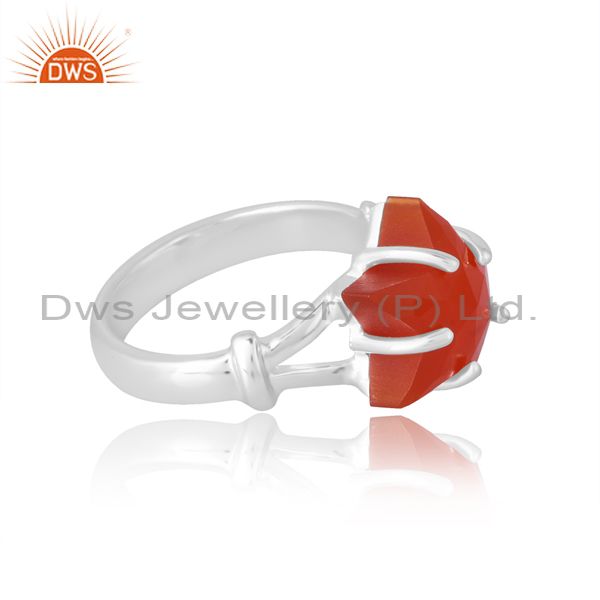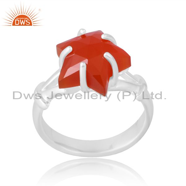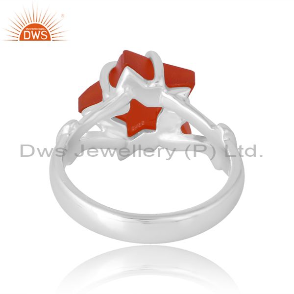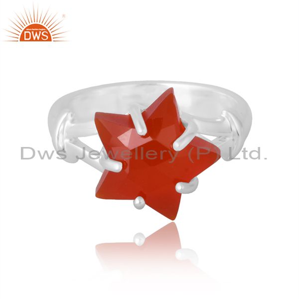 Valentines Red Onyx Star Ring With Prongs, Half Round Band