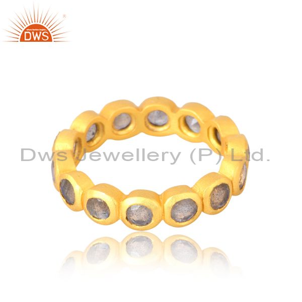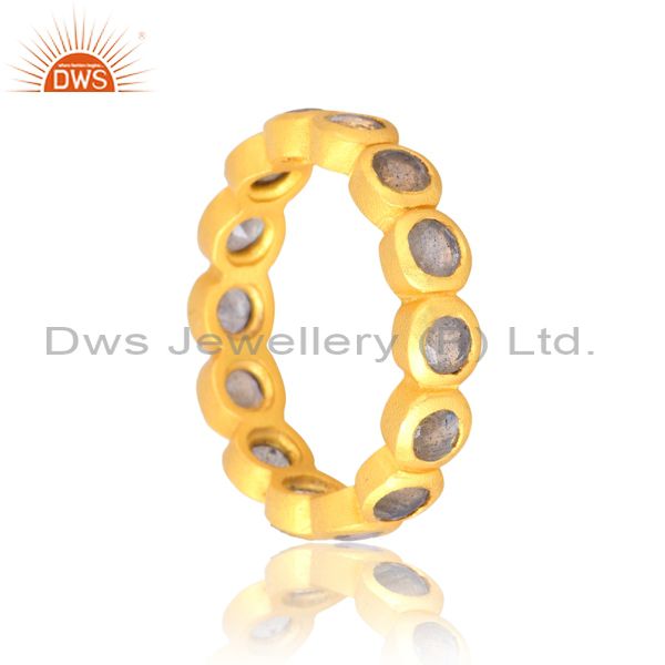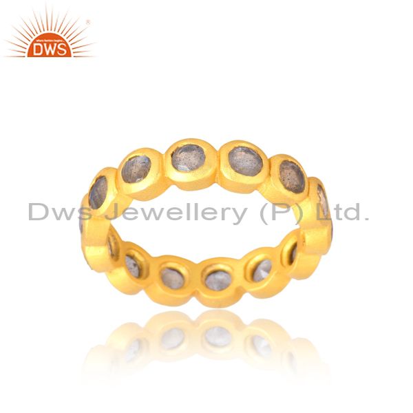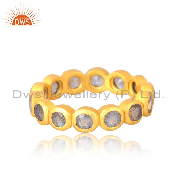 Vibrant 18K Gold Sterling Silver Labradorite Cut Round Ring