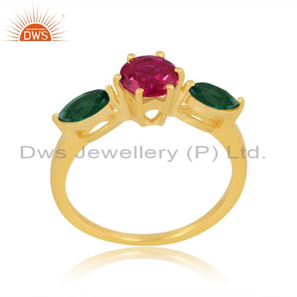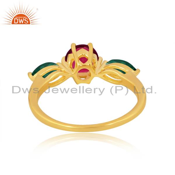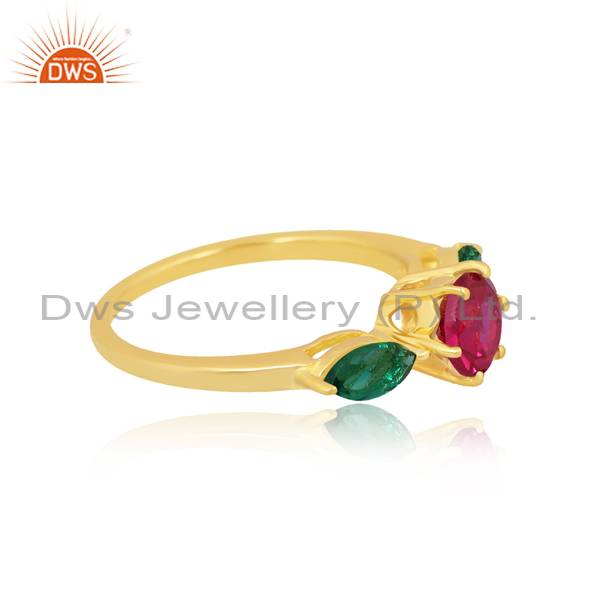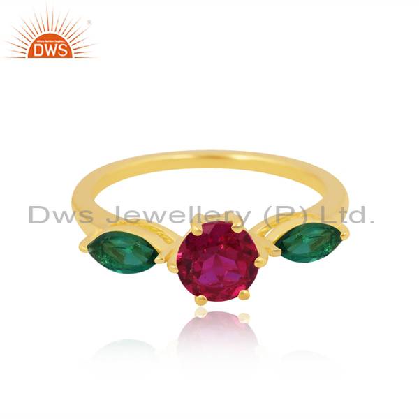 Vibrant Lab Created Round Cut Ruby & Affordable Emerald Ring