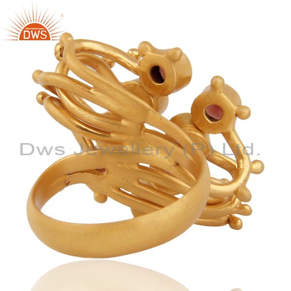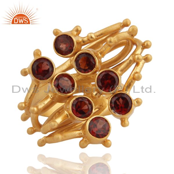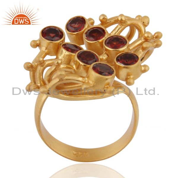Victorian Design Solid Sterling Silver Over 24K Gold Natural Garnet Ladies Ring