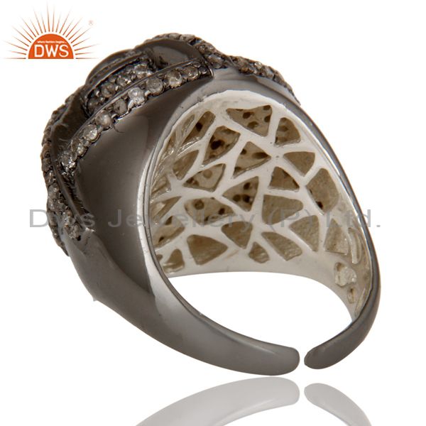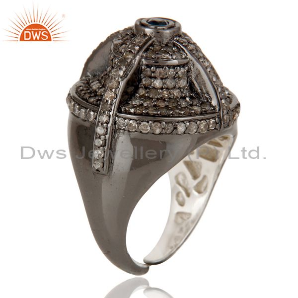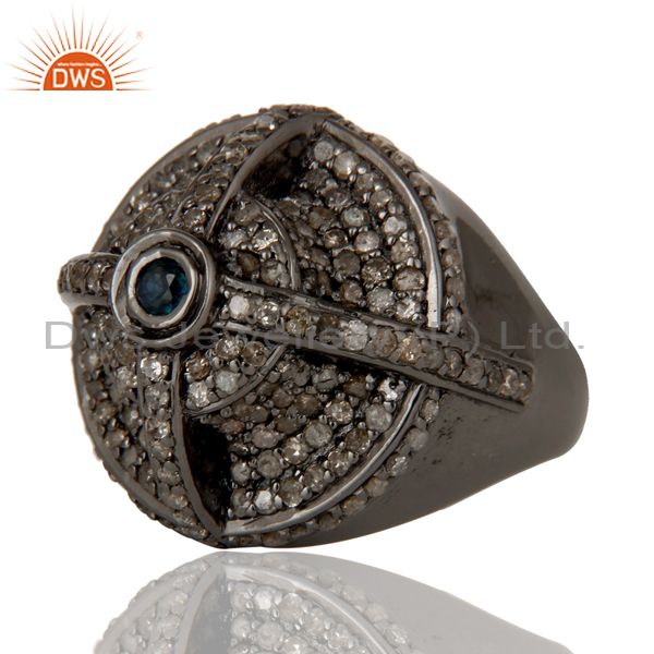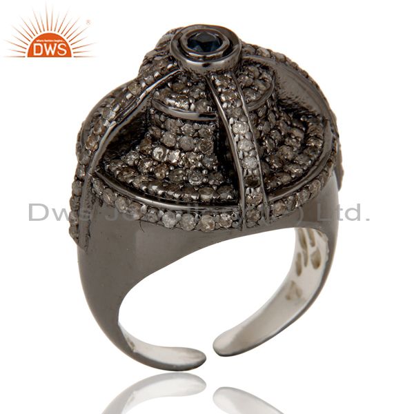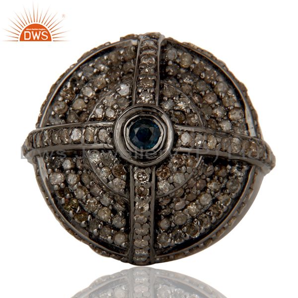 Victorian Estate Style Pave Diamond and Blue Sapphire Gemstone Silver Ring