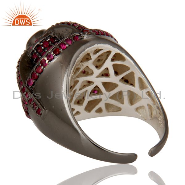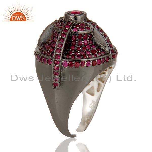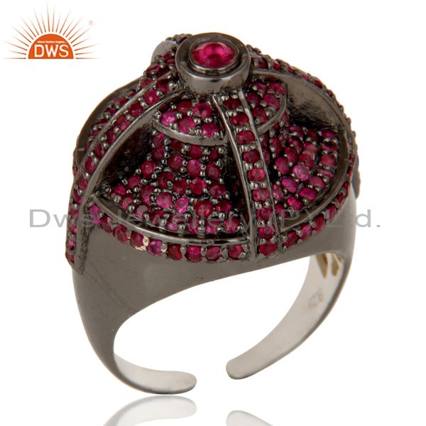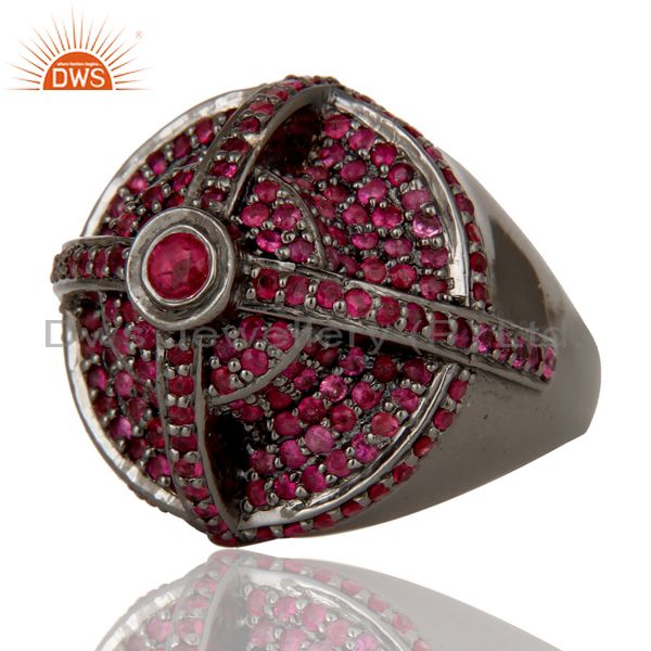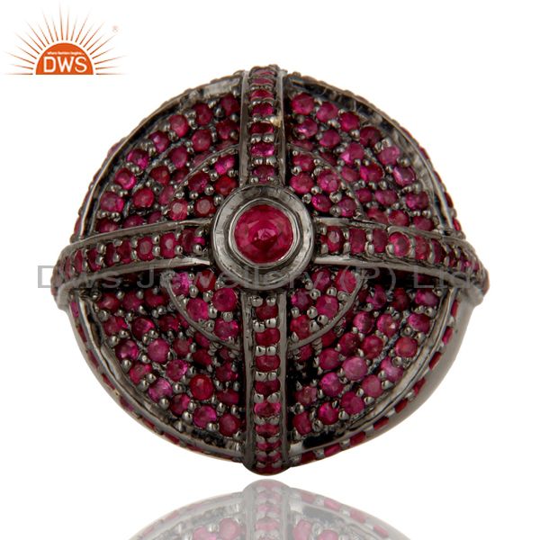 Victorian Estate Style Pave Set Natural Ruby Gemstone Silver Dome Ring