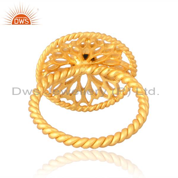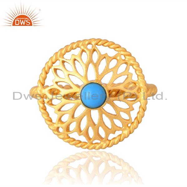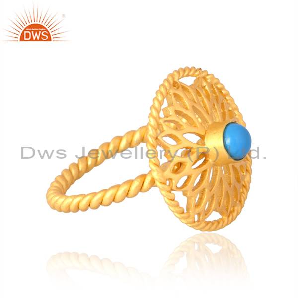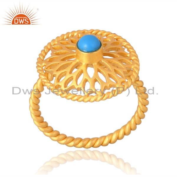 Vintage 18K Gold Ring W/Turquoise Cultured Cabushion Round