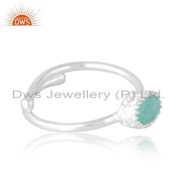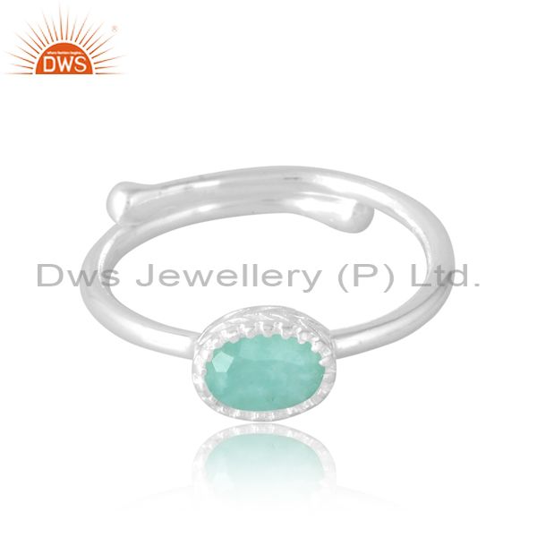 Warm Silver Band For Women In Amazonite Oval Cut Design