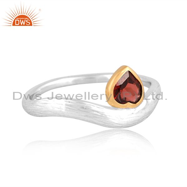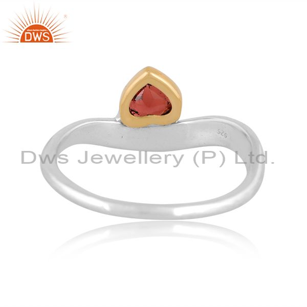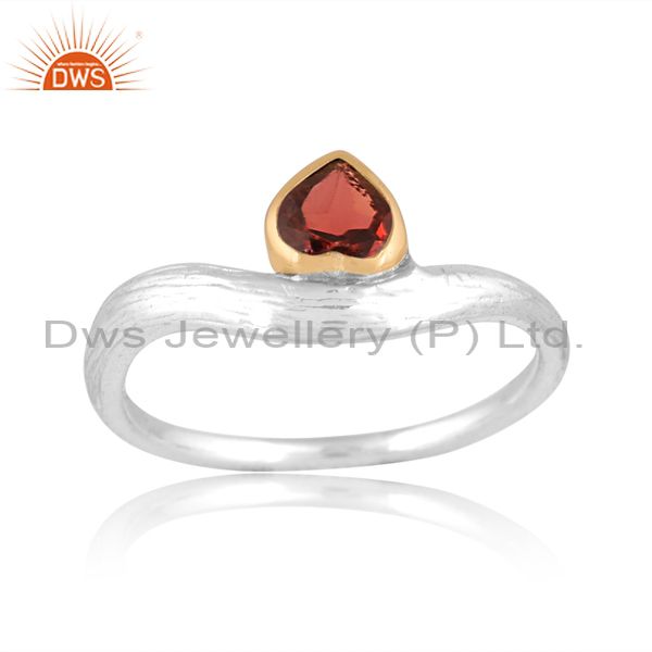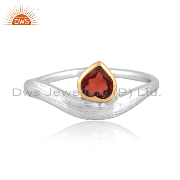 White & Gold Sterling Silver Ring With Garnet Cut Heart