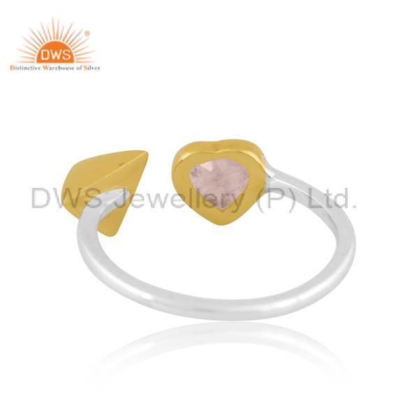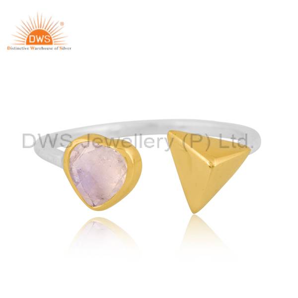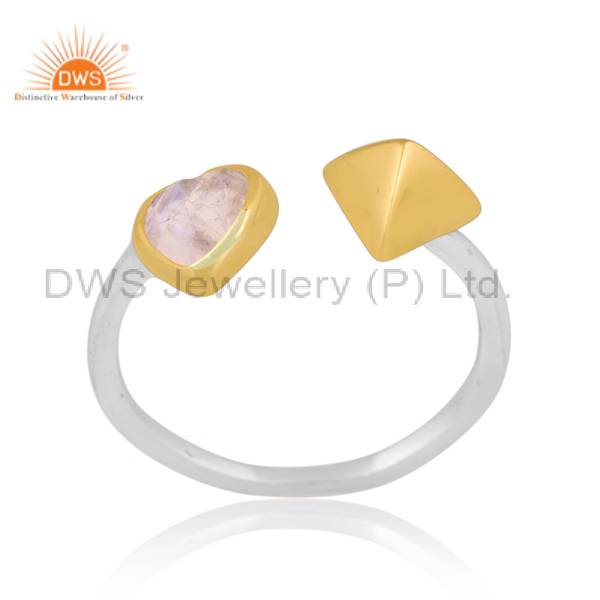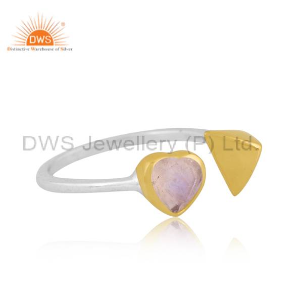 White & Gold Sterling Silver Ring With Rainbow Moonstone