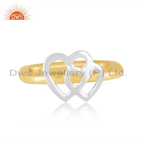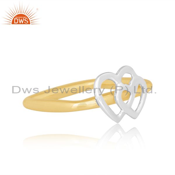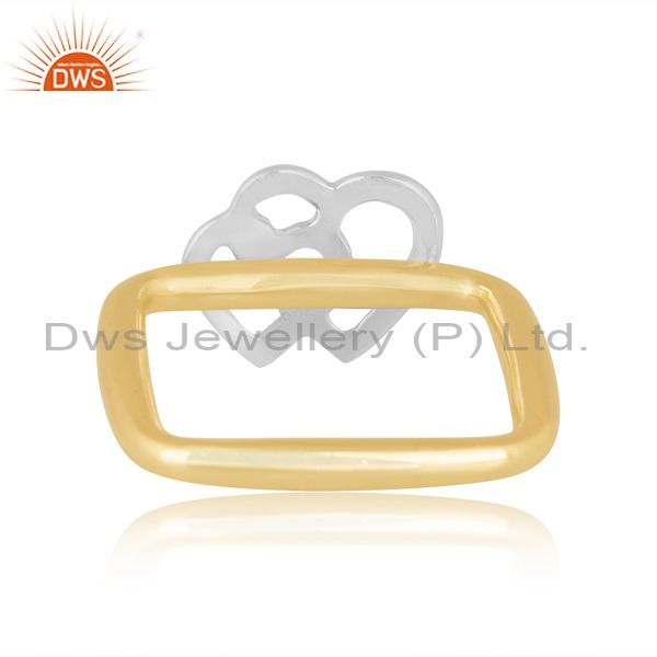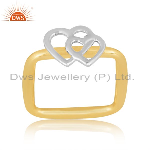 White And Brass Gold Square Shape Heart Charm Classic Ring