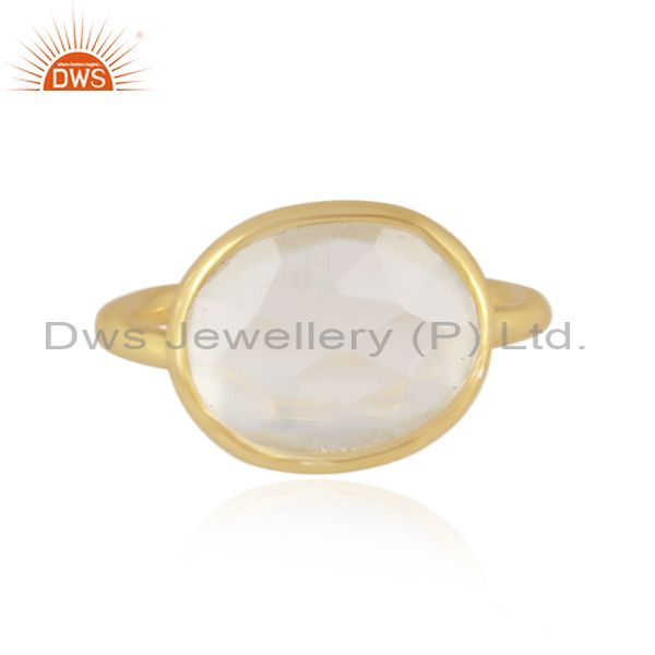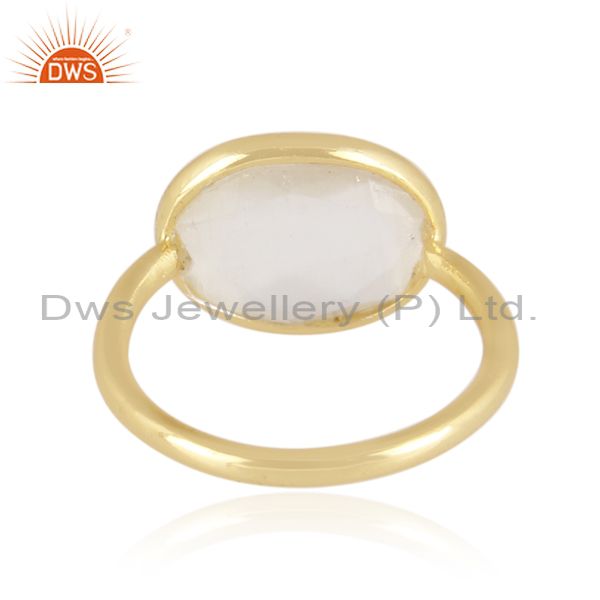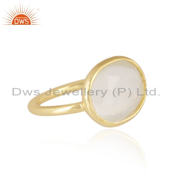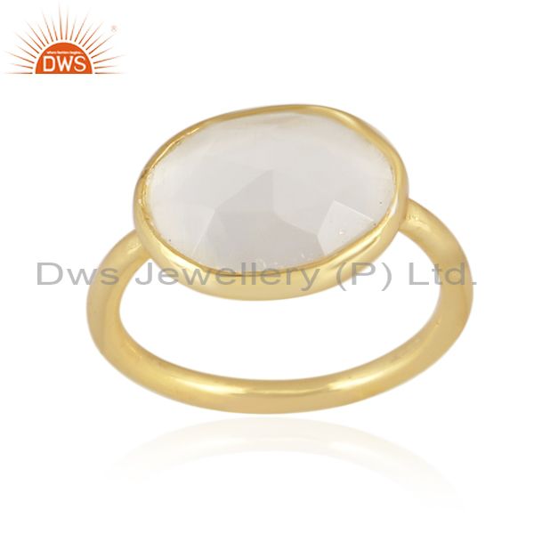 White Moon Stone Set Gold On 925 Sterling Silver Fancy Ring