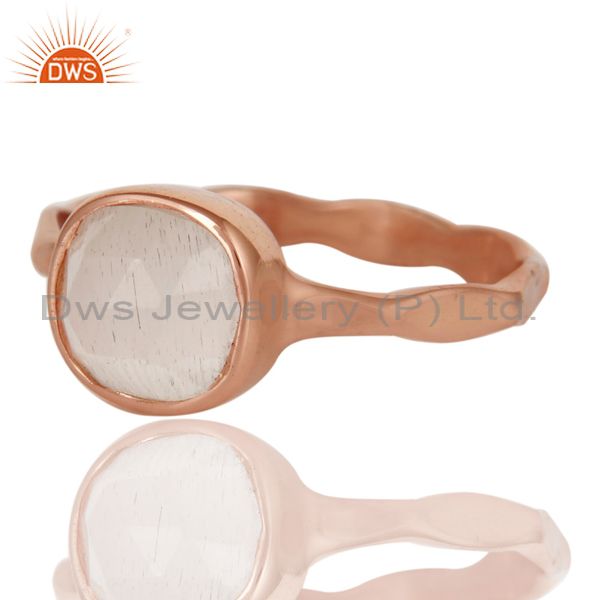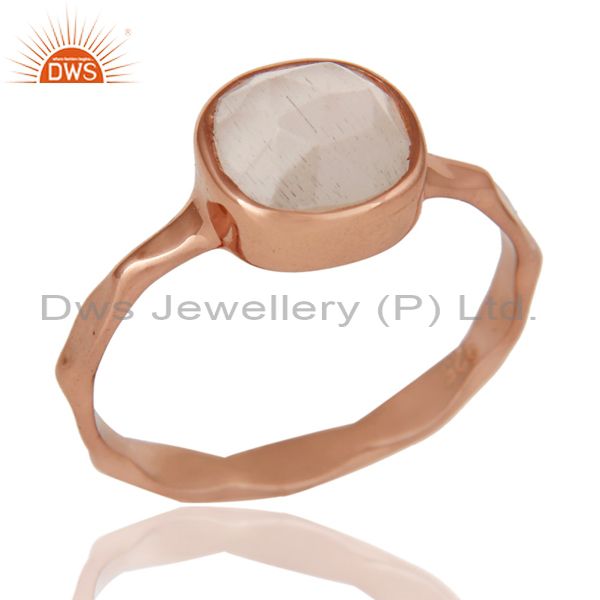 White Moonstone Sterling Silver Rose Gold Plated Stackable Ring Handmade Ring